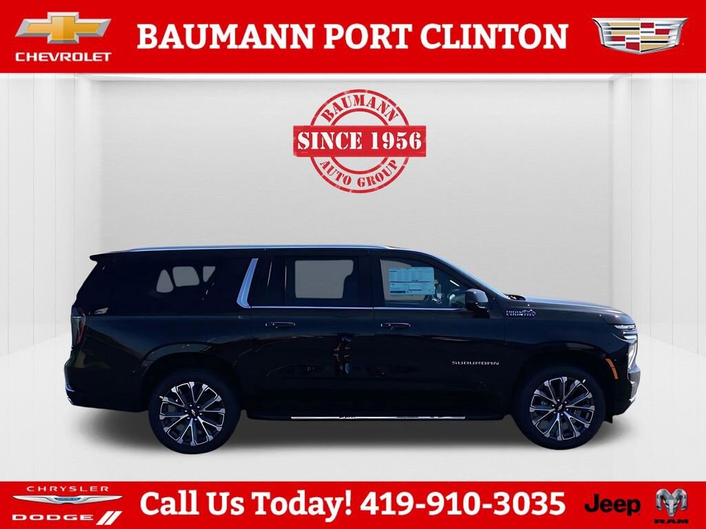 14/18 City/Highway MPGBlack 2026 Chevrolet Suburban High Country EcoTec3 6.2L V8 4D Sport Utility 4WD 10-Speed Automatic with OverdriveCALL 419- 732 -3148 or 419- 960- 4141, 10 Speakers, 15 Diagonal Multi-Color Head-Up Display, 1st and 2nd Rows All-Weather Floor Liners, 2-Speed Active Electronic AutoTrac Transfer Case, 3.23 Rear Axle Ratio, 3rd Row 60/40 Power-Folding Split-Bench, 3rd row seats: split-bench, 4-Way Power Driver Lumbar Seat Adjuster, 4-Way Power Front Passenger Lumbar Seat Adjuster, 4-Wheel Disc Brakes, 8-Way Power Driver Seat Adjuster, 8-Way Power Front Passenger Seat Adjuster, ABS brakes, Adaptive suspension, Advanced Trailering Package, Air Conditioning, Alloy wheels, AM/FM radio: SiriusXM with 360L, Apple CarPlay/Android Auto, Auto High-beam Headlights, Auto-dimming door mirrors, Auto-dimming Rear-View mirror, Auto-leveling suspension, Automatic temperature control, Blind Zone Steering Assist with Trailering, Bose 10-Speaker Surround with CenterPoint, Brake assist, Bright Front and Rear Door Sill Plates, Bumpers: body-color, Chrome Door Handles with Body-Color Strip, Compass, Delay-off headlights, Driver door bin, Driver vanity mirror, Dual Exhaust System, Dual front impact airbags, Dual front side impact airbags, Dual-Pane Power Panoramic Sunroof, Electronic Stability Control, Emergency communication system: OnStar Services capable, Exterior Parking Camera Rear, Extra Capacity Cooling System, Four wheel independent suspension, Front and Rear Black Bowtie Emblems, Front anti-roll bar, Front Bucket Seats, Front Center Armrest, Front dual zone A/C, Front fog lights, Front LED Fog Lamps, Front reading lights, Fully automatic headlights, Garage door transmitter, Heads-Up Display, Heated 2nd Row Outboard Seats, Heated door mirrors, Heated Driver and Front Passenger Seats, Heated front seats, Heated Power-Adjustable Outside Mirrors, Heated rear seats, Heated Steering Wheel, Heated steering wheel, Hill Descent Control, Hitch View with Pan/Zoom Image Adjustment, Illuminated entry, Inside Rearview Auo-Dimming Rear Camera Mirror, Integrated Trailer Brake Controller, Interior Camera, LED Headlamps with LED Daytime Running Lamps, LED Tail Lamps, Low tire pressure warning, Magnetic Ride Control Suspension, Max Trailering Package, Memory seat, Memory Settings, Navigation system: Google built-in compatibility (select service plan required, terms and limitations apply), Occupant sensing airbag, Outside temperature display, Overhead airbag, Overhead console, Panic alarm, Passenger door bin, Passenger vanity mirror, Perforated Heated and Ventilated Seats, Perforated Leather Seating Surfaces, Power door mirrors, Power driver seat, Power Liftgate, Power passenger seat, Power Release 2nd Row Bucket Seats, Power steering, Power Tilt and Telescopic Steering Column, Power windows, Power-Sliding Center Floor Console, Preferred Equipment Group 3LZ, Radio data system, Radio: 17.7 Diagonal Advanced Color LCD Display, Rain sensing wipers, Rear air conditioning, Rear anti-roll bar, Rear Power Liftgate, Rear reading lights, Rear window defroster, Rear window wiper, Remote keyless entry, Security system, SiriusXM with 360L Trial Subscription, Smart Trailer Integration Indicator, Speed control, Speed-sensing steering, Split folding rear seat, Spoiler, Steering wheel memory, Steering wheel mounted audio controls, Sun and Tow Package, Tachometer, Telescoping steering wheel, Tilt steering wheel, Traction control, Trip computer, Turn signal indicator mirrors, Universal Home Remote, Variably intermittent wipers, Ventilated front seats, Voltmeter, Wheel Locks (set of 4), Wheels: 22 x 9 Bright Machined Aluminum, Wireless Apple CarPlay/Wireless Android Auto, Wireless Phone Charging.