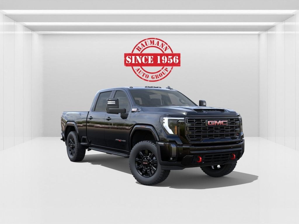 Recent Arrival!Onyx Black 2026 GMC Sierra 2500HD AT4 Duramax 6.6L V8 Turbodiesel 4D Crew Cab 4WD 10-Speed AutomaticBAUMANN TIFFIN 419.447.6612 PRESS 9.10-Speed Automatic, 4WD, Hvd Jet Black With Kalahari Accent Leather, 220-Amp Alternator, AT4 Preferred Package, AT4 Premium Plus Package, Black Badging Package, Black GMC Emblems, Black Sierra Nameplates, Hill Descent Control, Inside Rearview Auo-Dimming Rear Camera Mirror, LED Smoked Amber Roof Marker Lamps, Multicolor 15 Diagonal Head-Up Display, Off-Road Suspension, Power Sliding Rear Window with Defogger, Power Sunroof, Snow Plow Prep/Camper Package, Technology Package, Universal Home Remote, X31 Off-Road Package, 10-Way Power Driver Seat Adjuster with Lumbar, 10-Way Power Passenger Seat Adjuster with Lumbar, 120-Volt Bed Mounted Power Outlet, 120-Volt Instrument Panel Power Outlet, 2 Charge-Only Rear USB Ports, 2 Charge/Data USB Ports Inside Center Console, 2 USB Ports, 2-Speed Active Transfer Case, 4-Wheel Disc Brakes, 5th Wheel and Gooseneck Trailer Wiring Provisions, 7 Speakers, ABS brakes, Air Conditioning, Alloy wheels, AM/FM radio: SiriusXM with 360L, Apple CarPlay/Android Auto, Auto High-beam Headlights, Auto-dimming door mirrors, Auto-dimming Rear-View mirror, Automatic Emergency Braking, Automatic temperature control, Bed View Camera with Two Trailer Camera Provisions, Body Color Wheel Arch Moldings, Bose Premium 7-Speaker Sound System, Brake assist, Buckle to Drive, Bumpers: body-color, Compass, Deep-Tinted Glass, Delay-off headlights, Driver door bin, Driver Memory, Driver vanity mirror, Dual front impact airbags, Dual front side impact airbags, Electric Rear-Window Defogger, Electronic Stability Control, Emergency communication system: OnStar, Floor-Mounted Center Console, Following Distance Indicator, Forward Collision Alert, Front anti-roll bar, Front Bucket Seats, Front Center Armrest, Front dual zone A/C, Front fog lights, Front Pedestrian Braking, Front Premium Floor Liners with Removable Carpet Insert, Front Rain-Sensing Wipers, Front reading lights, Front wheel independent suspension, Fully automatic headlights, Gloss Black Header Grille and Grille Insert Bars, HD Surround Vision, Heated 2nd Row Outboard Seats, Heated door mirrors, Heated Driver and Front Outboard Passenger Seats, Heated front seats, Heated rear seats, Heated steering wheel, Heavy-Duty 80 Amp Battery, Hitch Guidance with Hitch View, Illuminated entry, in-Vehicle Trailering System App, IntelliBeam Automatic High Beam on/Off, Keyless Open and Start, Lane Departure Warning System, LED Cargo Area Lighting, Low tire pressure warning, Manual Tilt-Wheel/Telescoping Steering Column, Memory seat, Occupant sensing airbag, Off-Road High Clearance Step, OnStar Services Capable, Outside temperature display, Overhead airbag, Overhead console, Panic alarm, Passenger door bin, Passenger vanity mirror, Perforated Leather-Appointed Front Seat Trim, Pickup Box, Power door mirrors, Power driver seat, Power Front Passenger Windows with Express Up/Down, Power passenger seat, Power steering, Power windows, Premium audio system: Premium GMC Infotainment System, Push Button Start, Radio: AM/FM Stereo with Premium GMC Infotainment System, Rain sensing wipers, Rear Cross Traffic Alert, Rear Premium Floor Liners with Removable Carpet Insert, Rear reading lights, Rear seat center armrest, Rear step bumper, Rear Wheelhouse Liners, Rear window defroster, Remote keyless entry, Remote Vehicle Starter System, Safety Alert Seat, Security system, SiriusXM with 360L Trial Subscription, Speed control, Speed-sensing steering, Split folding rear seat, Spray-on Pickup Bedliner with GMC Logo, Steering Wheel Audio Controls, Steering wheel mounted audio controls, Tachometer, Telescoping steering wheel, Tilt steering wheel, Traction control, Trailer Cam Provisions and Trailer Viewing Software, Trailer Side Blind Zone Alert, Trip computer, Turn signal indicator mirrors, Ultrasonic Front and Rear Park Assi