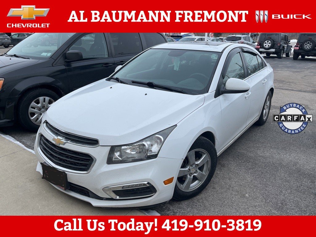 Recent Arrival! Priced below KBB Fair Purchase Price!Summit White 2015 Chevrolet Cruze 1LT 1LT 4D Sedan ECOTEC 1.4L I4 SMPI DOHC Turbocharged VVT 6-Speed Automatic Electronic with Overdrive FWDTHIS IS A FRESH TRADE THAT HAS NOT AND WILL NOT BE SERVICED. SOLD COMPLETELY AS IS AS WAS TRADED. SOLD WITH ABSOLUTELY NO GUARANTEES AT ALL. THIS IS JUST AN ALTERNATIVE TO TAKING IT TO THE AUCTION PASSING THE SAVINGS TO THE CONSUMER!!!Car shopping is sometimes inconvenient and stressful, and we want to take the hassle out of this all-too-common experience. If youâre interested in more convenience, less frustration and a process that works efficiently to meet your needs as a customer. Al BAUMANN AUTO GROUP. The Best Price Up Front Cash Offers For Any Trade-In Multiple Financing Quotes In Minutes A Team Of Dedicated Salespeople.CALL,419-332-8236 or {1-866-330-3601}, 1LT Driver Convenience Package, 6 Speaker Audio System Feature, Auto-Dimming Inside Rear-View Mirror, Chevrolet MyLink, Driver 6-Way Power Seat Adjuster, Driver/Front Passenger Illuminated Vanity Mirrors, Outside Heated Power-Adjustable Body-Color Mirrors, Pioneer Premium 9-Speaker System, Power Sliding Sunroof, Preferred Equipment Group 1SD, Radio: Chevrolet MyLink AM/FM Stereo w/CD Player, Rear Vision Camera, Remote Vehicle Starter System, SiriusXM Satellite Radio, Sun and Sound Package, Technology Package, USB Port Audio Interface Delete, 16 Painted Aluminum Wheels, 6 Speakers, 6-Way Manual Driver Seat Adjuster, ABS brakes, Air Conditioning, Alloy wheels, AM/FM radio: SiriusXM, AM/FM Stereo w/CD Player/MP3 Playback, Brake assist, Bumpers: body-color, Cargo Net, CD player, Compass, Delay-off headlights, Driver door bin, Driver vanity mirror, Dual front impact airbags, Dual front side impact airbags, Electronic Stability Control, Emergency communication system: OnStar Directions & Connections, Front anti-roll bar, Front Bucket Seats, Front Center Armrest, Front Passenger 6-Way Manual Seat Adjuster, Front reading lights, Front wheel independent suspension, Fully automatic headlights, Illuminated entry, Knee airbag, Low tire pressure warning, Occupant sensing airbag, Outside temperature display, Overhead airbag, Panic alarm, Passenger door bin, Passenger vanity mirror, Power door mirrors, Power steering, Power windows, Premium Cloth Seat Trim, Radio data system, Rear seat center armrest, Rear side impact airbag, Rear window defroster, Remote keyless entry, Security system, Speed control, Speed-sensing steering, Split folding rear seat, Steering wheel mounted audio controls, Tachometer, Telescoping steering wheel, Tilt steering wheel, Traction control, Trip computer, Variably intermittent wipers, Voltmeter, 1LT Driver Convenience Package, 6 Speaker Audio System Feature, Auto-Dimming Inside Rear-View Mirror, Chevrolet MyLink, Driver 6-Way Power Seat Adjuster, Driver/Front Passenger Illuminated Vanity Mirrors, Outside Heated Power-Adjustable Body-Color Mirrors, Pioneer Premium 9-Speaker System, Power Sliding Sunroof, Preferred Equipment Group 1SD, Radio: Chevrolet MyLink AM/FM Stereo w/CD Player, Rear Vision Camera, Remote Vehicle Starter System, SiriusXM Satellite Radio, Sun and Sound Package, Technology Package, USB Port Audio Interface Delete.