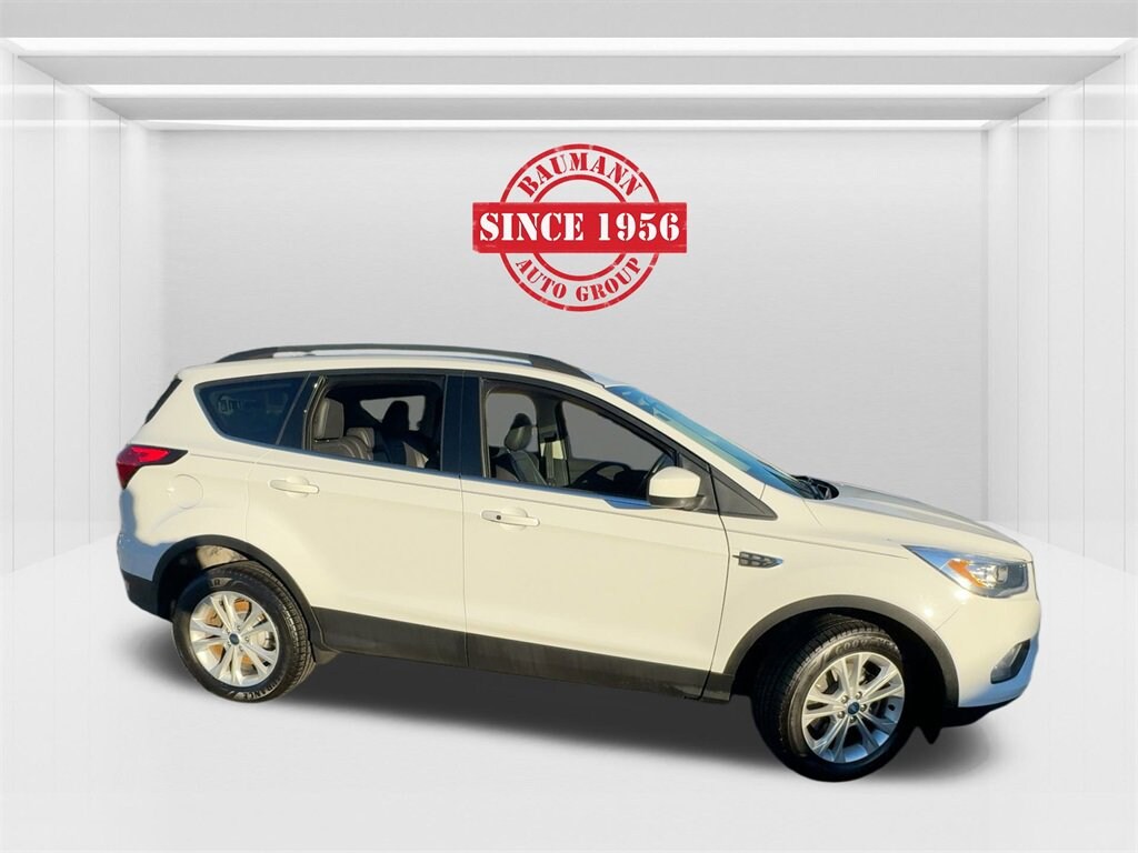 Recent Arrival! CARFAX One-Owner. Clean CARFAX.Oxford White 2019 Ford Escape SEL 4WD 4D Sport Utility 1.5L EcoBoost 6-Speed Automatic 4WDONE OWNER CLEAN CARFAX!!Car shopping is sometimes inconvenient and stressful, and we want to take the hassle out of this all-too-common experience. If youâre interested in more convenience, less frustration and a process that works efficiently to meet your needs as a customer. Al BAUMANN AUTO GROUP. The Best Price Up Front Cash Offers For Any Trade-In Multiple Financing Quotes In Minutes A Team Of Dedicated Salespeople.CALL,419-332-8236 or {1-866-330-3601}, 4WD, Equipment Group 300A, 3.51 Axle Ratio, 4-Wheel Disc Brakes, 6 Speakers, ABS brakes, Air Conditioning, Alloy wheels, AM/FM radio: SiriusXM, AppLink/Apple CarPlay and Android Auto, Automatic temperature control, Brake assist, Bumpers: body-color, Compass, Delay-off headlights, Driver door bin, Driver vanity mirror, Dual front impact airbags, Dual front side impact airbags, Electronic Stability Control, Emergency communication system: SYNC 3 911 Assist, Exterior Parking Camera Rear, FordPass Connect, Four wheel independent suspension, Front anti-roll bar, Front Bucket Seats, Front Center Armrest, Front dual zone A/C, Front fog lights, Front reading lights, Fully automatic headlights, Heated door mirrors, Heated front seats, Illuminated entry, Knee airbag, Leather Shift Knob, Low tire pressure warning, Occupant sensing airbag, Outside temperature display, Overhead airbag, Overhead console, Panic alarm, Passenger door bin, Passenger vanity mirror, Power door mirrors, Power driver seat, Power Liftgate, Power steering, Power windows, Radio data system, Radio: AM/FM Stereo w/MP3 Capable, Rear anti-roll bar, Rear Parking Sensors, Rear seat center armrest, Rear window defroster, Rear window wiper, Remote keyless entry, Roof rack: rails only, Security system, Speed control, Speed-sensing steering, Split folding rear seat, Steering wheel mounted audio controls, SYNC 3 Communications & Entertainment System, Tachometer, Telescoping steering wheel, Tilt steering wheel, Traction control, Trip computer, Variably intermittent wipers, Wheels: 17 Sparkle Silver-Painted Aluminum, 4WD, Equipment Group 300A.